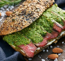 Na žar, ogret na 200 stopinj, na direkten ogenj položimo ribo. Pečemo jo približno pet minut na stran, odvisno od debeline. Nato jo obrnemo. Medtem v majhni ponvi pripravimo olivno olje, česen in rožmarin. Le toliko, da malenkost zagreje in olje navleče okus česna in rožmarina. Ko je riba pečena, njene fileje začinimo z aromatiziranim oljem in po želji dodamo še malo limoninega soka za svežino.