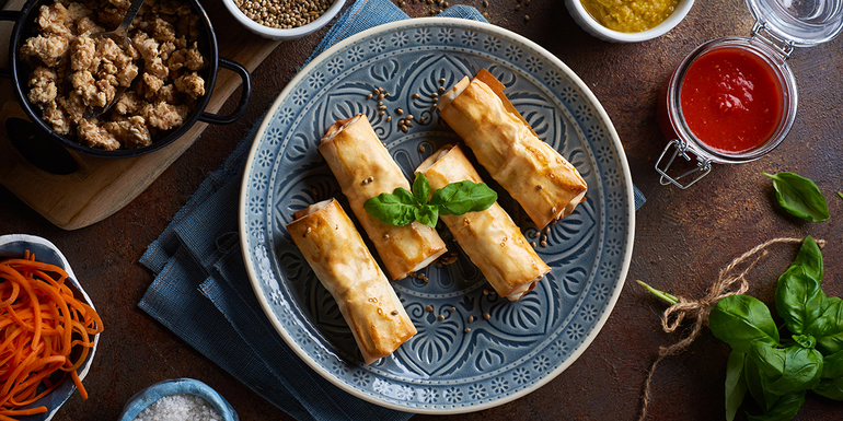 Piščančje prsi posolimo in prepražimo s čebulno omako ter semeni konoplje.