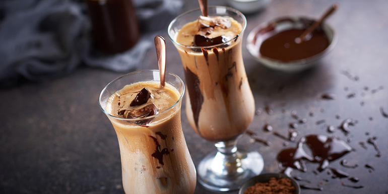 3. Prilijemo še četrtino ohlajene kave in izdatno količino čokoladnega sirupa.