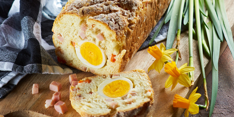 4. Maso razdelimo na dva dela: na prvi del postavimo kuhana jajca in prekrijemo z drugim delom mase. Z rokami oblikujemo v štruco.