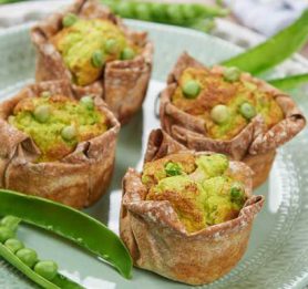 5. Začnemo zlagati zmečkanke: vzamemo listek vlečenega testa, ga premažemo z oljem, obložimo s še enim kosom testa, tako da se robovi ne prekrivajo, ponovno premažemo z oljem, ponovimo še s tretjim listom testa. Na vrh križno postavimo dve rezini pršuta. Na sredino pršuta damo kos mesa (ne pozabimo odrezati vrvice!), ga obložimo s četrtino špinače in žlico čebule. Zapremo s pršutom, nato pa še s testom, ki ga list za listom preprosto zmečkamo med rokami. Tako ponovimo z vsemi kosi mesa.
