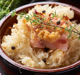 1. Pripravimo karamelizirano čebulo: v ponvi popražimo čebulo, ki ji dodamo balzamični kis.