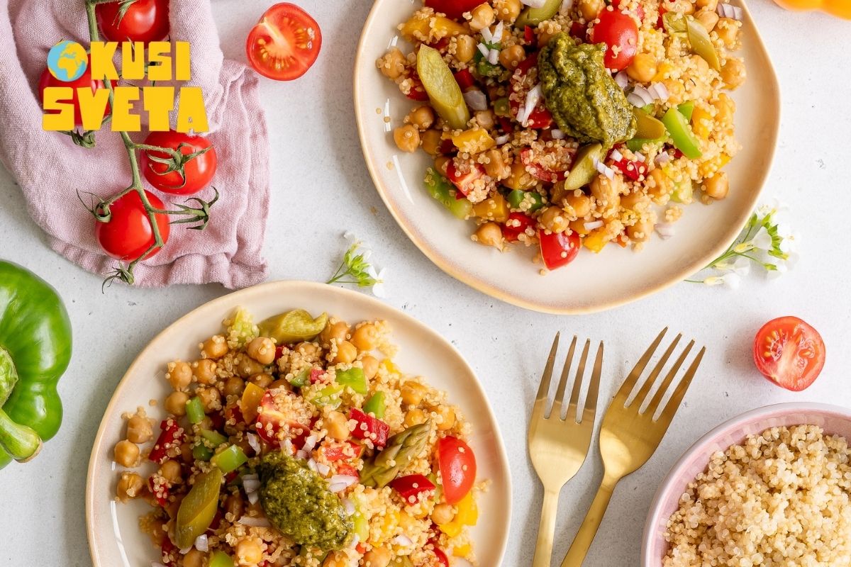 - Na koncu dodaj pesto in potresi z nekaj mlade čebule.
