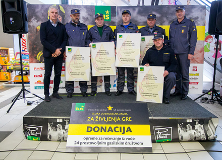 V okviru velike dobrodelne akcije ZA ŽIVLJENJA GRE je danes 24 prostovoljnih gasilskih društev podravske in pomurske regije prejelo donacijo opreme. Akcija je pod okriljem Tuša združila dobavitelje in kupce, ki od septembra dalje z nakupom posebej označenih izdelkov v trgovinah Tuš sodelujejo pri zbiranju sredstev za nakup nujno potrebne gasilske opreme za reševanje na in iz vode. Danes je dosegla drugi mejnik, vendar še ni zaključena, saj bo potekala vse do konca novembra – sledila ji bo še zadnja predaja donacije prostovoljnim gasilskim društvom širom Slovenije.