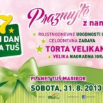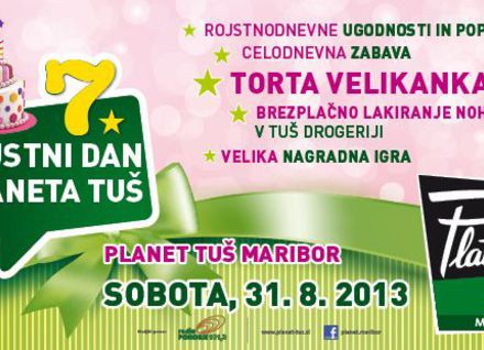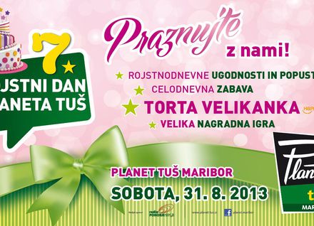 Glavni dogodek avgustovskih Planetov Tuš bo nedvomno veliko praznovanje 7. rojstnega dne mariborskega Planeta. S prireditvami za vse generacije ter posebnimi rojstnodnevnimi popusti v izbranih trgovinah, ki bodo za zadnje nakupe pred začetkom novega šolskega leta še kako dobrodošli, bo na zadnji avgustovski dan gotovo prava sobotna izbira. Ob rojstnem dnevu se bodo odlično zabavale tudi male princeske in pogumni vitezi, za katere v Planetu pripravljajo posebno predstavo, ustvarjalnice in delavnice, osrednji dogodek dneva pa bo torta velikanka, s katero se bodo obiskovalci posladkali ob 12.30 uri. Ves dan bodo potekale tudi sladke in osvežilne rojstnodnevne degustacije, predstavitve ter posebna ponudba ugodnosti v trgovinah.