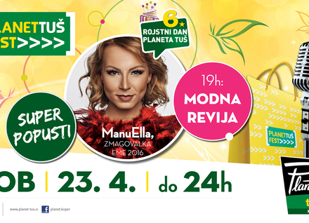 Planet Tuš Koper bo v soboto, 23. aprila, prostor zabave, nakupovanja in številnih ugodnosti. Obeta se namreč tradicionalni Planet Tuš Fest, največji zabavno-nakupovalni dan na obali, ki bo postregel z bogatim programom in torto velikanko, saj nakupovalno središče ravno na ta dan praznuje svojo 6. obletnico. Otroške ustvarjalnice, pravljice in pravljične poslikave obraza bodo popoldan prevesile v večerno dogajanje, ko bo obiskovalce razveseljeval modno-glasbeni spektakel z zmagovalko letošnje EME ManuElle in simpatičnim pevcem Žanom Serčičem. Že tradicionalno bo vrhunec zabavno-nakupovalnega doživetja potekal v večernih urah s super popusti, ugodnostmi, prav posebnimi nagradami in torto velikanko.