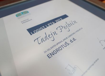 Izvršni direktor nabave in oskrbovalne verige v podjetju Engrotuš Tadej Pojbič je prejel priznanje Logist leta 2012, ki ga podeljuje Slovensko logistično združenje. Z obsežnim projektom prenove logistike je Tuš v lanskem letu naredil izjemen korak naprej na področju organizacijske, tehnološke in okoljske odličnosti oskrbovalne verige.