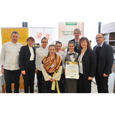 1. mesto: Srednja šola za gostinstvo in turizem Maribor, ki je pripravila Nadevan kunčji hrbet z jurčki, pehtranovo peno in rumenim ljubljanskim korenjem, hrustljavim pastinakom, štruklji z rdečim zeljem, bučnim pirejem, kuhano hruško in nešpljami ter naribanimi listi korenja.