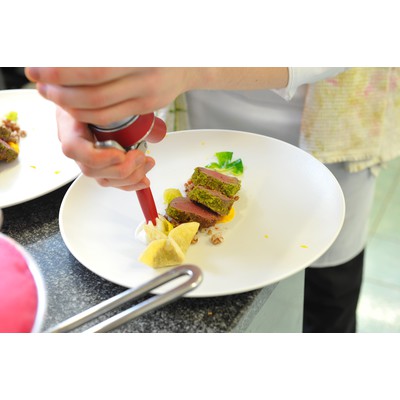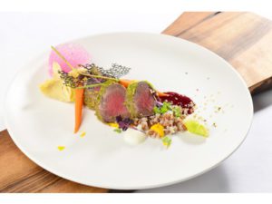 3. mesto: Srednja šola za gostinstvo in turizem Ljubljana s krožnikom Srninega fileja, divjačinske omake z jerebiko, pire zelene, kruhov kipnik s cvetovi leske.