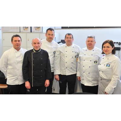 Strokovni ekipi Društva kuharjev in slaščičarjev Slovenije, kateri predseduje Tomaž Vozelj, ki je danes ocenjevala nadebudne srednješolce, so se pridružili tudi znani slovenski kulinarični navdušenci.