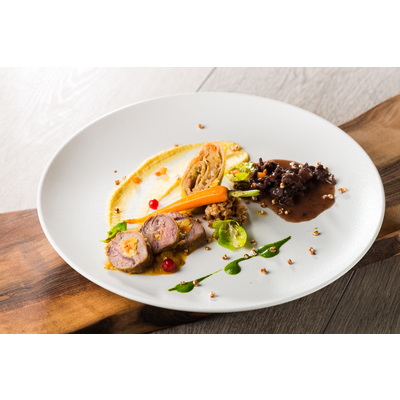 3. mesto: Srednja šola za gostinstvo in turizem Radovljica, ki je pripravila krožnik s Potepuško račko (pečena račja prsa sous vide, z marmelado iz rdečega zelja, glaziranim korenjem, sortiranim brstičnim ohrovtom, cvetačnim pirejem ter krompirjevimi njoki.