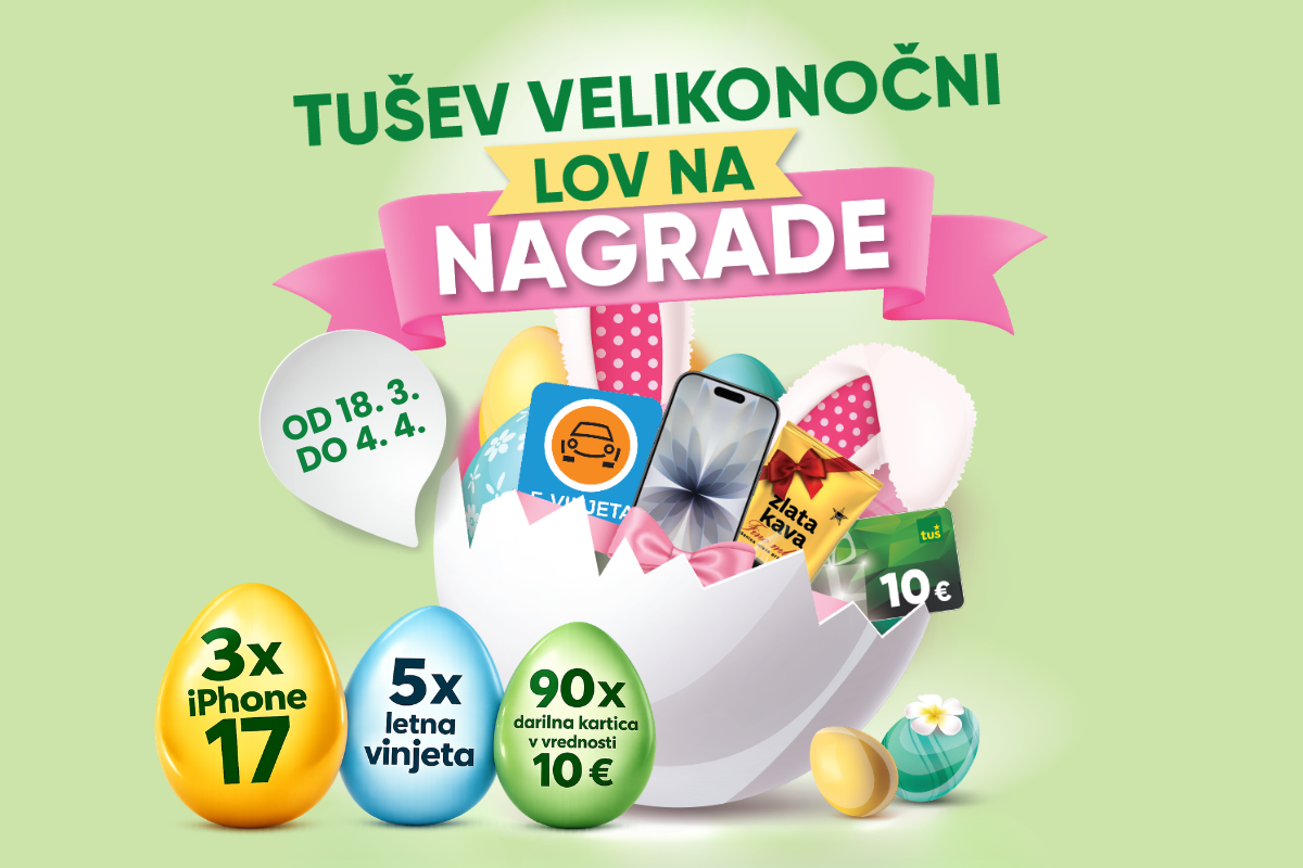Med 18. 3. in 4. 4. 2026 v izbranih trgovinah Tuš poteka zabavna velikonočna aktivnost – lov na skrita čokoladna jajca z nagradami!