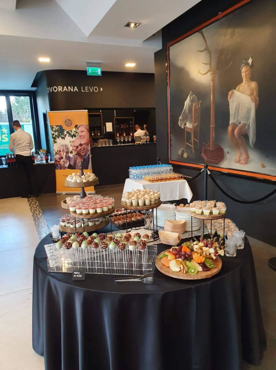 - kulinarično ponudbo kot dopolnitev seminarja, ki ga organiziramo v kino dvorani Planeta Tuš, ki sprejme od 100 do        350 oseb in pogostitvijo v naših prostorih,