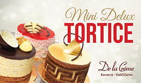 Novost v ponudbi Kavarne in slaščičarne De la Crême Celje so Mini delux tortice različnih okusov. Izbirate lahko med čokoladno tortico z mangom, okusom borovnice, oreha in jagode ter tortico z limoninim mascarponejem z jagodo.