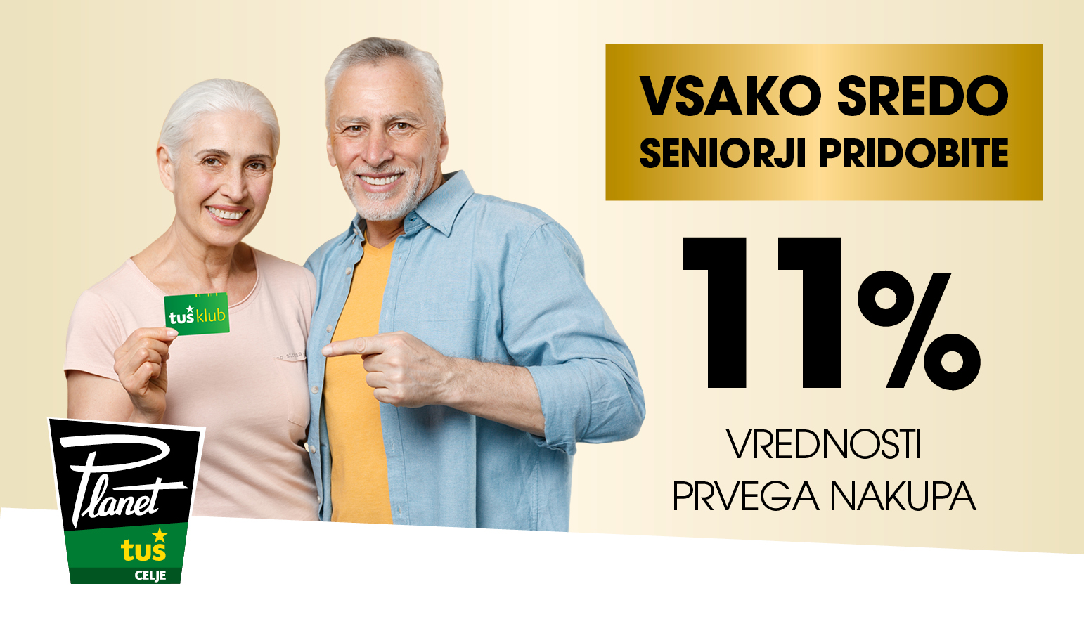 Dragi upokojenci, v trgovinah Tuš vam na vsak prvi nakup nudimo 11% popust na celoten nakup.