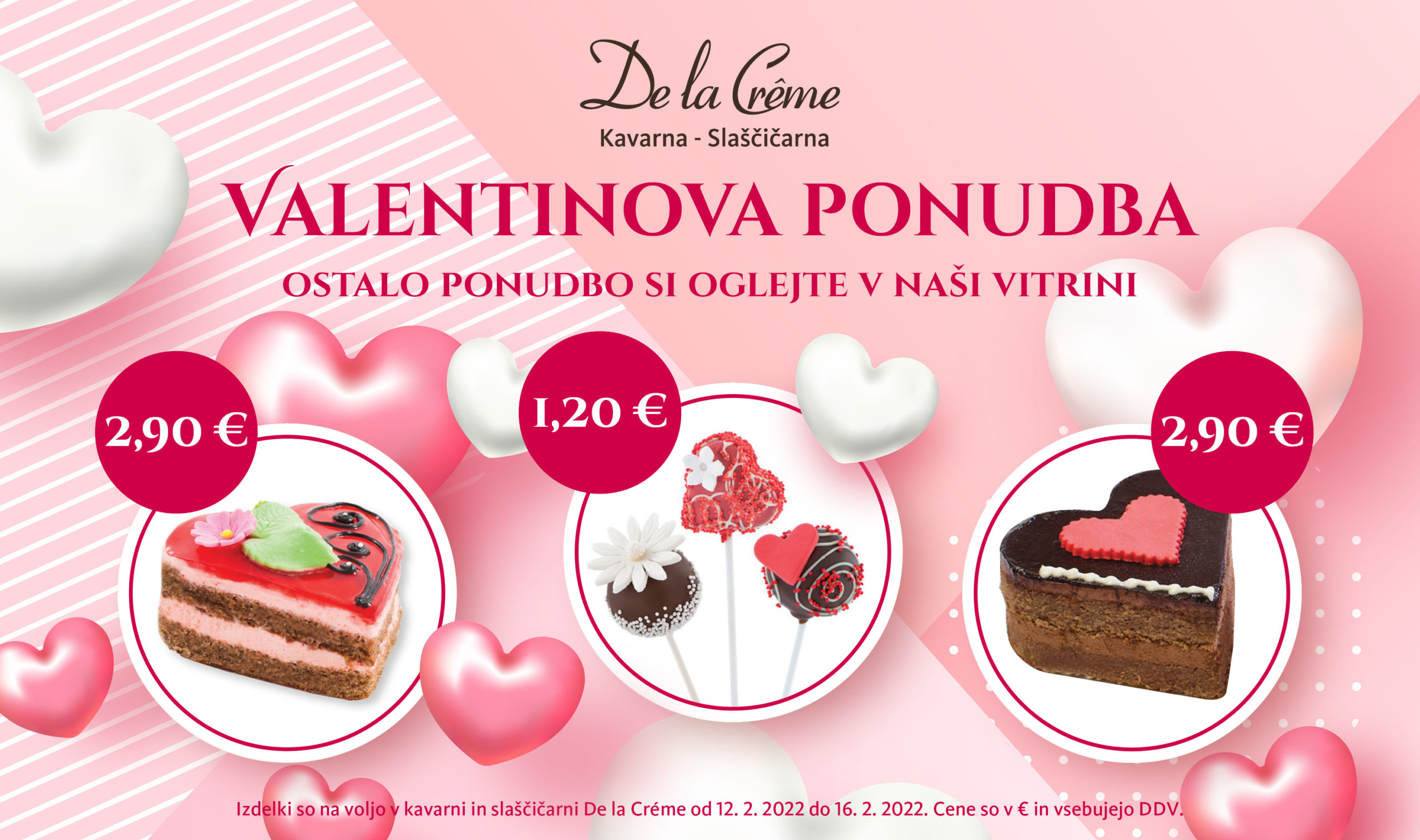 V kavarni in slaščičarni De La Créme so za naše goste pripravili posebno valentinovo ponudbo.Pridite v Planet Tuš Celje že danes in se posladkajte s torticami ali drugimi dobrotami!
