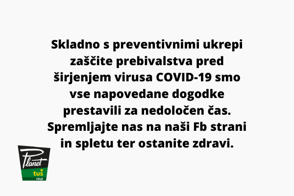 Skladno s preventivnimi ukrepi zaščite prebivalstva pred širjenjem virusa COVID-19 smo vse napovedane dogodke prestavili za nedoločen čas. Spremljajte nas na naši Fb strani in spletu ter ostanite zdravi.