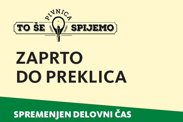 Skladno s preventivnimi ukrepi zaščite prebivalstva pred širjenjem virusa COVID-19 To še Spijemo – Pivnica do preklica zapiramo. Ostanite zdravi.